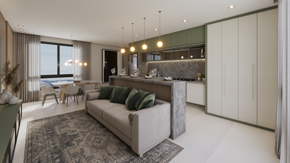 O Bellagio oferece apartamentos de 2 dormitórios com suíte, entre 57,4 m² e 69,3 m² de área privativa, com plantas bem distribuídas, ventilação natural e ótima posição solar.